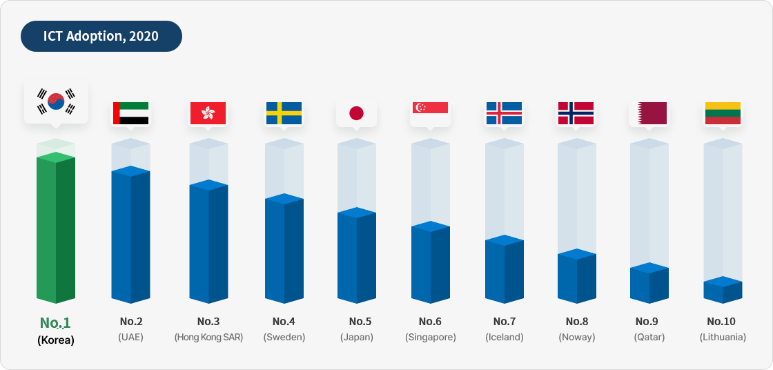 Korea is evaluated as a global ICT leader in ICT industry based on its high level of ICT technology and its penetration rate.