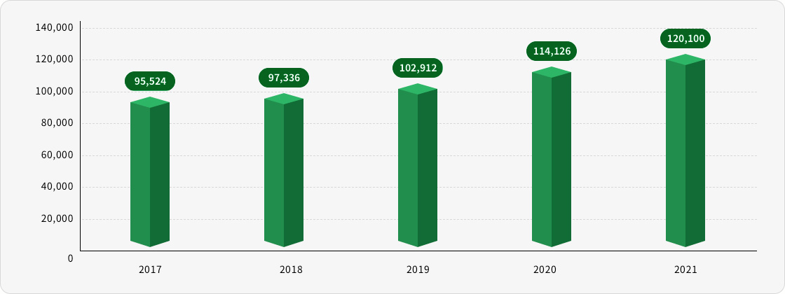 | Number of employees | 95,524 | 97,336 | 102,912 | 114,126 | 120,100 | 4,86 |