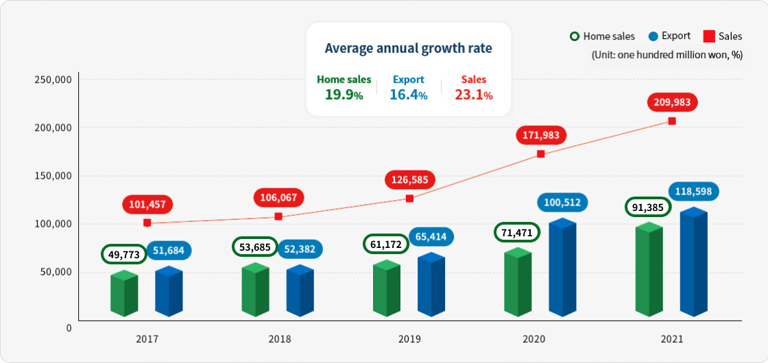 The total pharmaceutical production in 2021 was about US$19.4 billion (KRW 25.49 trillion), and the average annual growth rate of the pharmaceutical market for the last 5 years is shown at 3.3%.