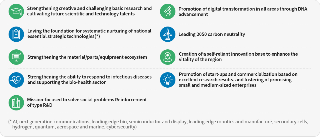 (*AI, next generation communications, leading edge bio, semiconductor and display, leading edge robotics and manufacture, secondary cells, hydrogen, quantum, aerospace and marine, cyber security)