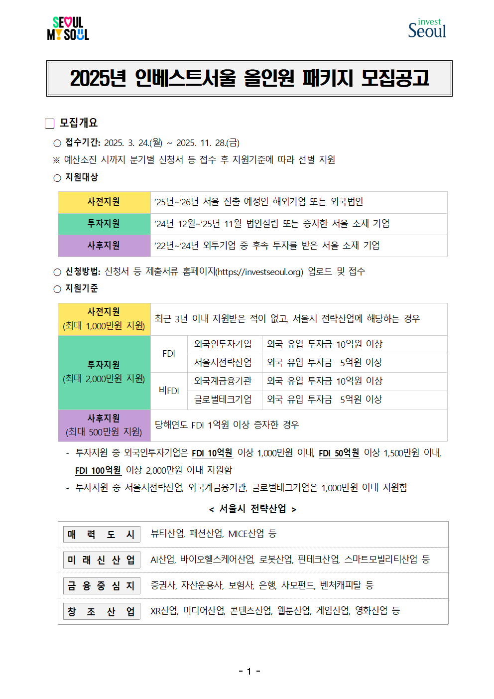 2025년 인베스트서울 올인원 패키지 지원기업 모집