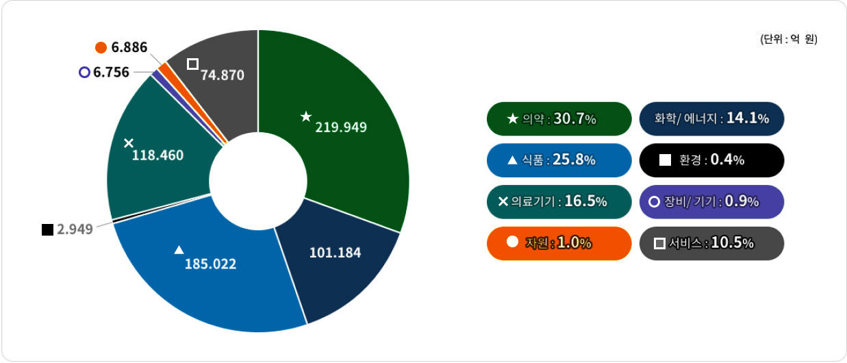 바이오산업 부문 총 투자비는 3조 679억 원으로 총 투자비의 44.1%로 나타났습니다.