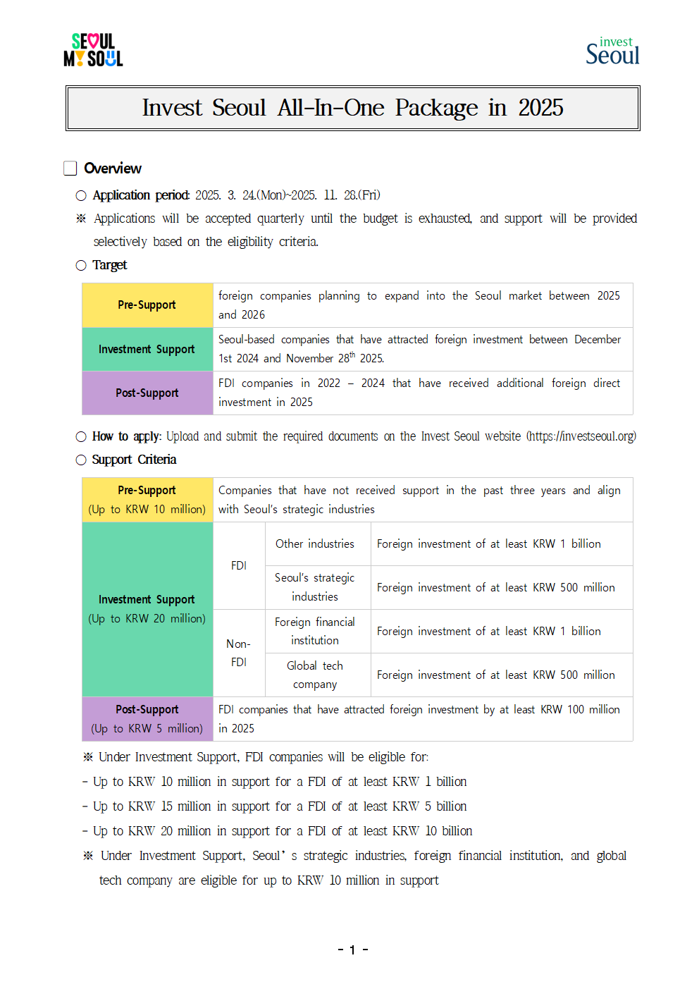 [Call for Application] Invest Seoul All-In-One Pacakge [Pre-Support] in 2025